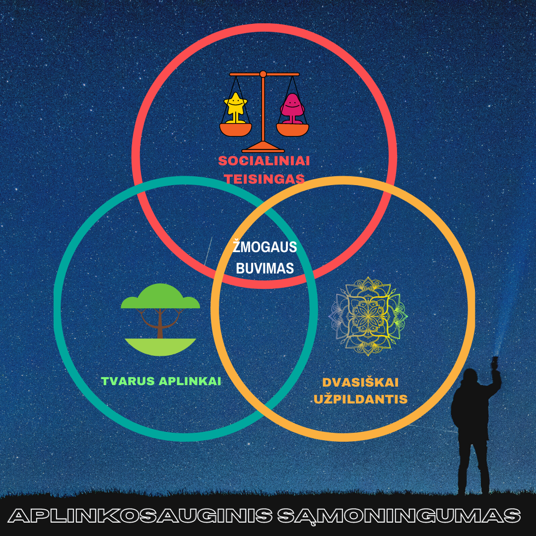 Kaip rodo infografikas, norėdami visapusiškai pasiekti aplinkosauginį sąmoningumą, turime pasiekti žmogaus buvimo planetoje tikslą, kuris yra: