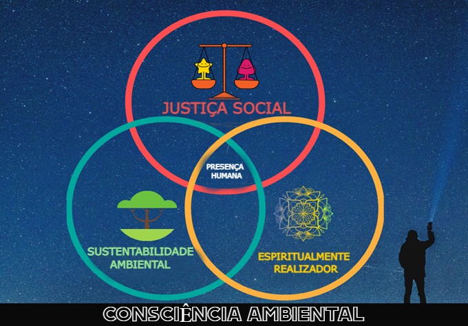 Como mostrado no infográfico, para atingirmos plenamente a consciência ambiental, temos de alcançar o objectivo de uma presença humana no planeta que é: